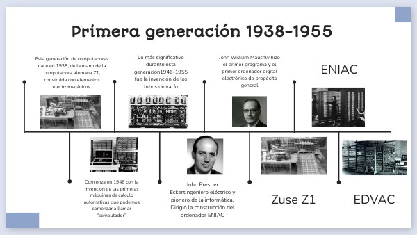 Esta generación de computadoras nace en 1938, de la mano de la computadora alemana Z1, construida con elementos electromecánicos.