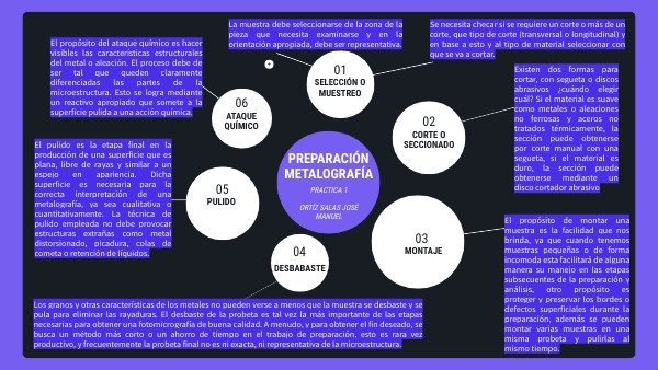 El pulido es la etapa final en la producción de una superficie que es plana, libre de rayas y similar a un espejo en apariencia. Dicha superficie es necesaria para la correcta interpretación de una metalografía, ya sea cualitativa o cuantitativamente. La técnica de pulido empleada no debe provocar estructuras extrañas como metal distorsionado, picadura, colas de cometa o retención de líquidos.