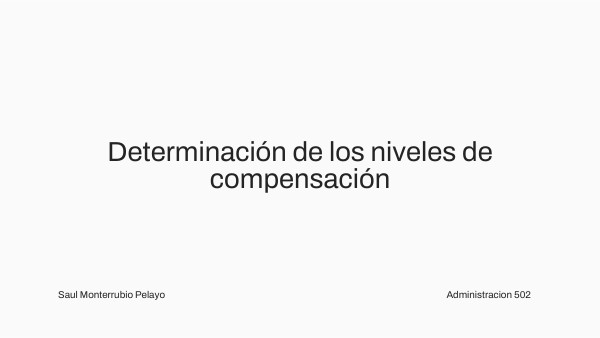 Niveles de pago. El nivel de pago adecuado refleja tanto el valor relativo del puesto dentro de la estructura organizativa como el valor absoluto que el mercado de trabajo otorga a puestos similares. Para determinar este nivel, se combinan las jerarquizaciones obtenidas mediante la evaluación de puestos con las tasas de ingreso obtenidas a partir de estudios comparativos. A través de gráficas o líneas de tendencia salarial, se establecen los niveles de compensación adecuados para diferentes puestos en base a su valor en puntos y su correspondiente nivel salarial. Estructura de la compensación: La estructura de compensación agrupa y asigna niveles salariales a categorías de puestos en una organización. Esto simplifica la remuneración, proporciona consistencia y equidad, y permite diferencias salariales dentro de cada categoría. También facilita la gestión de nuevos puestos, asignando una compensación inicial y permitiendo avances basados en el rendimiento.