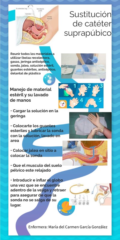 • Cargar la solución en la geringa • Colocarte los guantes esteriles y lubricar la sonda con la solución, lavado en area • Colocar jalea en sitio a colocar la sonda • Que el musculo del suelo pélvico este relajado • Introducir e inflar el globo una vez que se encuentre adentro de la vejiga y retraer para asegurar de que la sonda no se salga de su lugar.