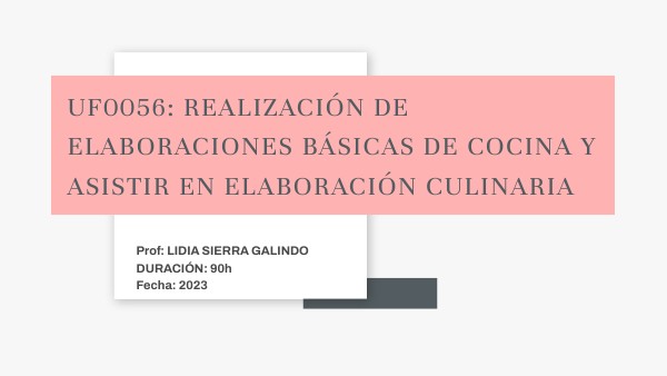 UF0056: realización de elaboraciones básicas de cocina y asistir en elaboración culinaria