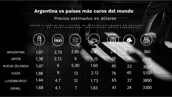 hecho a partir del listado de precios estimados en dólares de expatistan.com. producción: mario simonovich