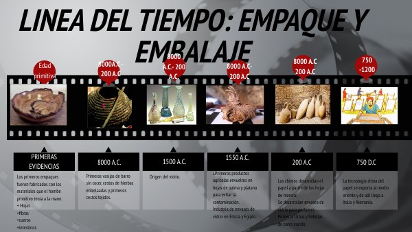 Los primeros empaques fueron fabricados con los materiales que el hombe primitivo tenia a la mano:+ Hojas +fibras +cueros +intestinos