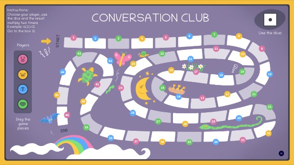 Instructions: Choose your player, use the dice and the result multiply two times! Example: 6(2)=12 Go to the box 12