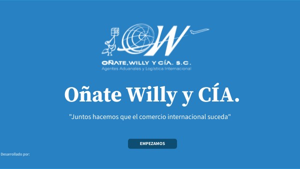 Oñate Willy y CÍA. es una empresa de soluciones aduanales y logísitca, resultado de la fusión de dos Agentes Aduanales: Gregorio Oñate y Frank Willy. Contamos con más de 50 años de experiencia
