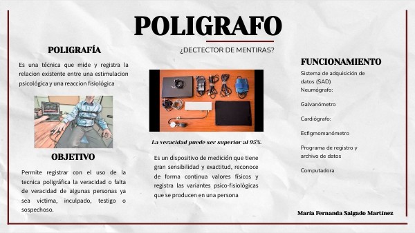 Permite registrar con el uso de la tecnica poligráfica la veracidad o falta de veracidad de algunas personas ya sea victima, inculpado, testigo o sospechoso.