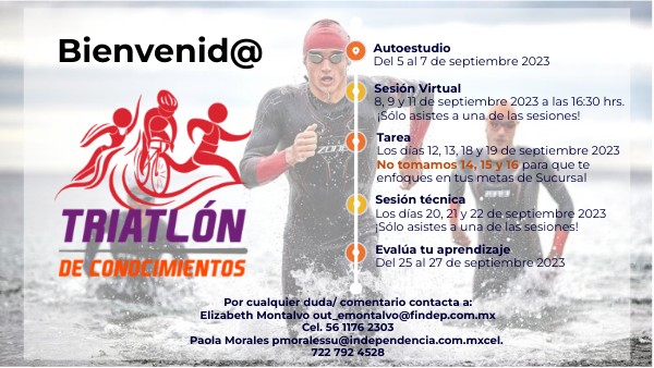 Sesión Virtual8, 9 y 11 de septiembre 2023 a las 16:30 hrs. ¡Sólo asistes a una de las sesiones!