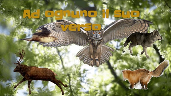 Chi fa questo verso? Scoprilo tu! Gli animali comunicano fra loro in molti modi, sia con il linguaggio del corpo che emettendo suoni differenti. Ascolta le cinque registrazioni ed abbinale all'immagine dell'animale: basta cliccare sul nome che indica il verso per ascoltare la registrazione; quindi premi sul punto vicino al suono e poi su quello vicino all'immagine dell'animale, si formerà un segmento che unirà le due estremità (verso/animale).
