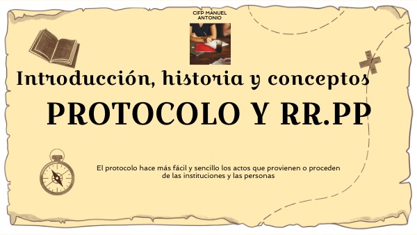 INTRODUCCIÓNEl Protocolo es la normativa o conjunto de reglas que son legisladas o establecidas por los usos y costumbres; se implantan como consecuencia de una necesidad social, Sirven para normalizar las relaciones entre todas las personas y entre instituciones y gobiernos. Su objetivo fundamental es el civismo en el trato entre los seres humanos en sus diversos ámbitos sociales; político, social, cultural, empresarial, religioso, deportivo, etc.Es consustancial a la sociedad y es por ello que su aparición se remonta al mismo instante en el que surge un grupo de individuos que tienen que convivir y relacionarse entre sí. Se puede afirmar que el Protocolo es una ciencia milenaria. Los egipcios ya lo empleaban en su vida diaria. Existe un gran número de libros y estudios históricos sobre el protocolo y ceremonial a lo largo de la historia que nos muestran las normas, costumbres y tradiciones y cómo se deben desarrollar los actos importantes que se producen en las distintas épocas.A modo de ejemplo se exponen algunos: *DOMINGUEZ CASAS, RAFAEL: Arte y etiqueta de los Reyes Católicos: artistas, jardines y bosques. tesis de historia sobre el arte y etiqueta de los Reyes Católicos. *QUINTANILLA, MARÍA CONCEPCIÓN: Nobleza y caballería en la Edad Media, Arco Libros, Madrid 1996. Libro pequeño sobre la nobleza y los caballeros que resume las claves de la Edad media. *VARELA, JAVIER: La muerte del Rey. El ceremonial funerario de la monarquía española (1500-1885). Libro que estudia detalladamente los funerales monárquicos en españa desde carlos V a Alfonso XII