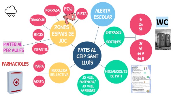 L’alumnat d’infantil, 1r i 2n sortirà a la porxada, amb els 2 docents de vigilància de porxada, pati tobogan i pati bicis.