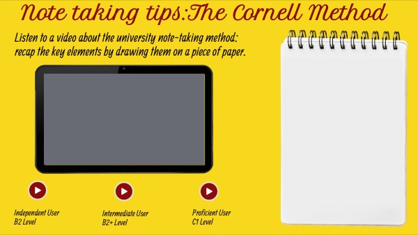 Listen to a video about the university note-taking method: recap the key elements by drawing them on a piece of paper.