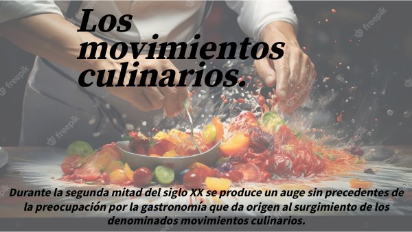 Los movimientos culinarios son aquellas tendencias gastronómicas que parten de propuestas innovadoras que se consolidan y crean escuela.