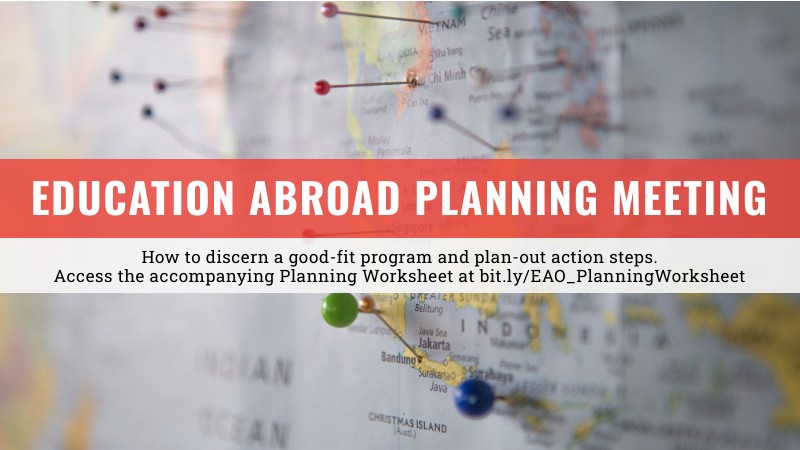 - Attend a Planning Meeting with your Education Abroad Advisor to discern a good fit program and plan-out next steps