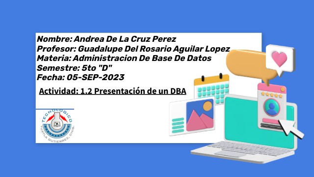 Nombre: Andrea De La Cruz PerezProfesor: Guadalupe Del Rosario Aguilar Lopez Materia: Administracion De Base De Datos Semestre: 5to "D" Fecha: 05-SEP-2023