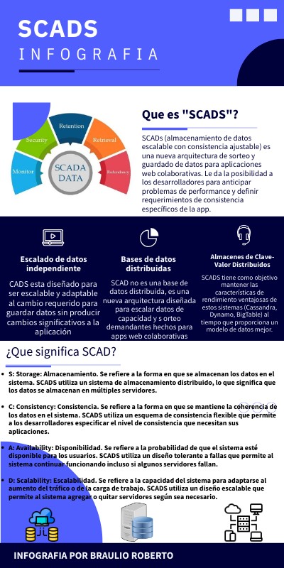 - S: Storage: Almacenamiento. Se refiere a la forma en que se almacenan los datos en el sistema. SCADS utiliza un sistema de almacenamiento distribuido, lo que significa que los datos se almacenan en múltiples servidores.