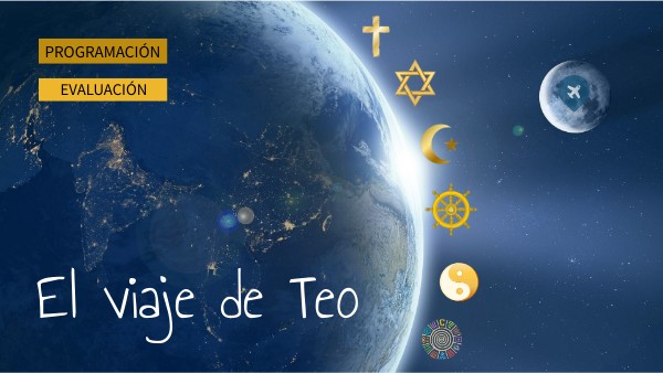 En El Viaje de Teo loa alumnos hacen un viaje virtual para conocer diferentes religiones del mundo. Su trabajo consiste en hacer un blog con un diario de su viaje, en el que cuentan con creatividad el viaje como si lo hubieran hecho realmente, incluyendo fotos de ellos en los lugares que va a visitar, y que debe recoger toda la información de lo que van aprendiendo. Finalmente expondran alguns aspectos de una de ellas en el Parlamento de las Religiones. Como el proyecto es muy largo si se trabaja todo, se puede asignar a cada grupo que viaje a tres o cuatro lugares. Como sugerencia sería interesante que cada grupo trabajara una religión teísta (etapas 1, 2 3), una religión oceánica (etapas 4, 5) y una religión aborigen (etapa 6). En esta primera página tienen la presentación del proyecto, un video introductorio, la actividad inicial (en el dibujo del libro), el link a cada etapa del viaje, el mapa donde está el itinerario y que contiene información de cada lugar y los lugares que visitar en ellos, y la actividad final del Parlamento de las Religiones.
