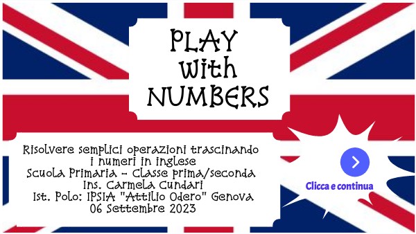 Risolvere semplici operazioni trascinando i numeri in inglese Scuola Primaria - Classe prima/seconda Ins. Carmela Cundari Ist. Polo: IPSIA "Attilio Odero" Genova 06 Settembre 2023