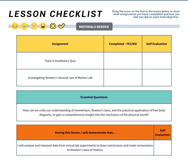 Drag the icons on the line to the boxes below to show what assignments you have completed and how you feel you did on each task/objective.
