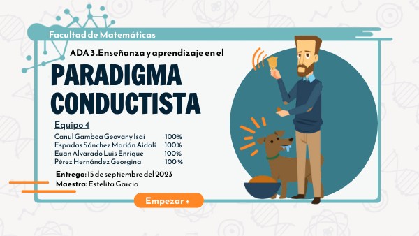 Alberto Smith Reyna Bazan. (2022). Generalización y Discriminación de estímulos [video]. YouTube. https://youtu.be/Q7ia-xqqIzw?si=BT5iCBCTSaRtW0zk Descripción del paradigma conductista y sus aplicaciones e implicaciones educativas de Gerardo Hernández en el libro paradigmas en psicología de la educación. (1998). En PARADIGMAS EN PSICOLOGÍA DE LA EDUCACIÓN. Diana Mayorquin Rosales. (2020). Teoría del condicionamiento sin reforzamiento [video]. YouTube. https://youtu.be/oAzRbz6EBog?si=blJqEMwoeccccyVc En Minutos.(2022). EL CONDUCTISMO en minutos [video]. YouTube. https://youtu.be/2hCi0kEa0k8?si=XtJrq7zBcTjgdUT2 Pedagogía MX .(2021). ¿Qué es el 'Conductismo'? | Conceptos Clave - Exponentes - Características [video]. YouTube. https://youtu.be/DkvkzESiPXE?si=F9nBUCQ0zmyHeeGp Pedagogía MX.(2022). Teoría del 'Conexionismo' de Thorndike + Pensamiento Educativo [video]. YouTube. https://youtu.be/-JD3YpnZCtM?si=66WMGxquLwYJGk6F Psicología Animada. (2022). Condicionamiento clásico de Pavlov con ejemplos: Así funciona (Resumen animado) [video]. YouTube.https://youtu.be/y180PrDlm7g?si=zkfaTAzaeFKQMkdQ