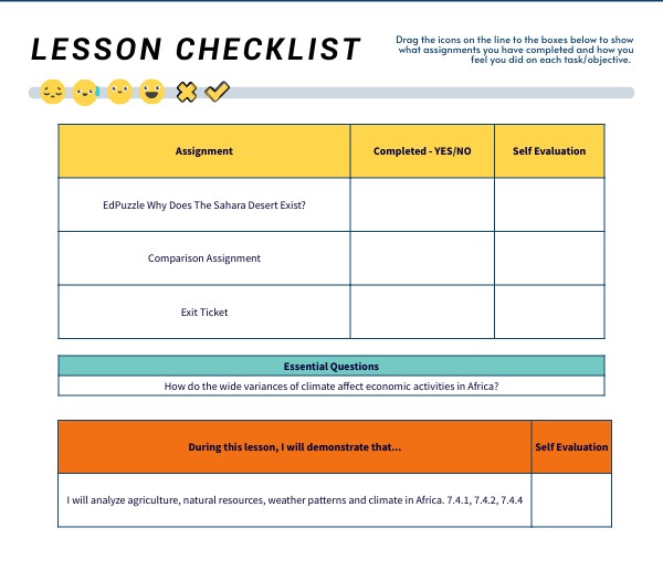 Drag the icons on the line to the boxes below to show what assignments you have completed and how you feel you did on each task/objective.