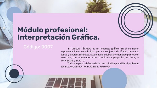 El DIBUJO TÉCNICO es un lenguaje gráfico. En él se tienen representaciones constituidas por un conjunto de líneas, números, letras y diversos símbolos. Este lenguaje debe ser entendido por todo el colectivo, con independecia de su ubicación geográfica, es decir, es UNIVERSAL y EXACTO. Todo ello para la búsqueda de una solución plausible al problema técnico. «VUESTRO TRABAJO EN EL FUTURO»
