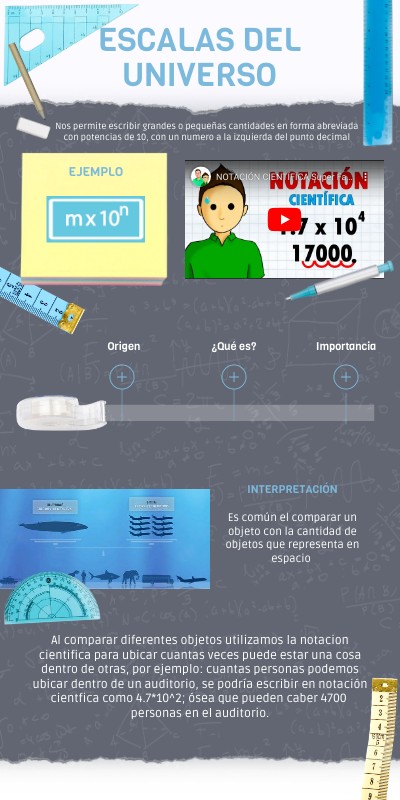 Al comparar diferentes objetos utilizamos la notacion cientifica para ubicar cuantas veces puede estar una cosa dentro de otras, por ejemplo: cuantas personas podemos ubicar dentro de un auditorio, se podría escribir en notación cientfica como 4.7*10^2; ósea que pueden caber 4700 personas en el auditorio.