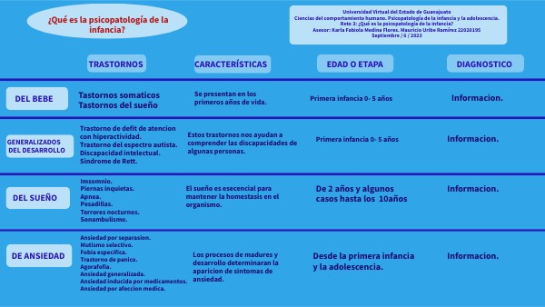Psicopatología de la infancia y la adolescencia. Reto 3: ¿Qué es la psicopatología de la infancia? Asesor: Karla Fabiola Medina Flores.