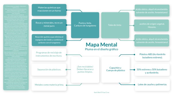 ▷ Cómo se fabrica un bolígrafo - Historia de la escritura. (s. f.). https://historiaescritura.com/instrumentos/como-fabricar-boligrafo Aceromafe, R. (2023). Características del material ABS y motivos para usarlo. Aceromafe. https://www.aceromafe.com/material-abs/#:~:text=La%20composici%C3%B3n%20que%20tiene%20el,mediante%20inyecci%C3%B3n%2C%20solapado%20y%20prensado. Admin. (2022). Carburo de tungsteno (Wolframio). CarboSystem. https://carbosystem.com/carburo-de-tungsteno/#:~:text=Carburo%20de%20Tungsteno%20(Wolframio)&text=Perteneciente%20al%20grupo%20de%20los,mecanizado%20dentro%20del%20sector%20industrial. Admin, & Admin. (2015, 1 diciembre). Ecodiseño: reducción del uso de materiales. AIMPLAS. https://www.aimplas.es/blog/ecodiseno-reduccion-del-uso-de-materiales/ Ciencia, C. (2023). Cómo se fabrican los bolígrafos. CurioSfera Ciencia. https://curiosfera-ciencia.com/como-se-fabrican-los-boligrafos/ Conde, J. (2018). Guía de diseño para la identificación gráfica del manejo integral de los residuos sólidos urbanos. CienciasAmbientales.com. https://www.cienciasambientales.com/mx/noticias-medioambiente-mexico/guia-de-diseno-para-la-identificacion-grafica-del-manejo-integral-de-los-residuos-solidos-urbanos-15907 ¿De qué está hecha la tinta de bolígrafo? (s. f.). http://es.scienceaq.com/Chemistry/100315062.html DISEÑO GRÁFICO: IMPACTO | ecodisenocba. (s. f.). ecodisenocba. https://ecodisenocba.wixsite.com/ecodisenocba/dise-o-gr-fico--impacto EcoDiseño: Diseño de Productos-Servicios Sostenibles | Cámara de España. (s. f.). Cámara de España. https://www.camara.es/innovacion-y-competitividad/como-innovar/diseno-sostenible Ecoembes. (2021, 27 septiembre). ¿Dónde tirar bolígrafos? Ecoembes dudas del reciclaje. https://ecoembesdudasreciclaje.es/donde-tirar-los-boligrafos/ Guía practica de tecnologías para el proceso de Re manufactura. (2018). Guía practica de tecnologías para el proceso de Re manufactura. MANTENIMIENTO DE EQUIPOS DE COMPUTO y DISEÑO GRAFICO. (s. f.). Servicio De Reparación De Computadoras. https://mantenimiento-de-equipos-de-comuto-y.negocio.site/ Oleas, J. (2022). Residuos en los procesos de producción de la industria de artes gráficas en la impresión de gran formato. El caso de Riobamba, Ecuador. Zincografía. https://doi.org/10.32870/zcr.v6i11.126 Partes de un bolígrafo BIC cristal | Ofistore. (s. f.). https://www.ofistore.com/partes-de-un-boligrafo-bic-cristal/ Trem-Din. (2023, 9 enero). Reciclaje y reutilización en el diseño. Trem-din. https://www.trem-din.com/post/reciclaje-y-reutilizaci%C3%B3n-en-el-dise%C3%B1o