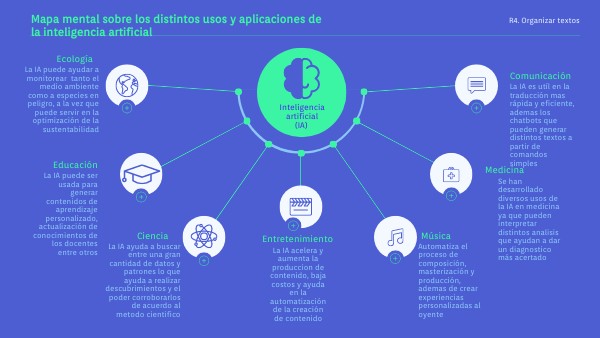 Mapa mental sobre los distintos usos y aplicaciones de la inteligencia artificial