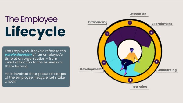The Employee Lifecycle refers to the whole duration of an employee's time at an organisation - from initial attraction to the business to them leaving. HR is involved throughout all stages of the employee lifecycle. Let's take a look!