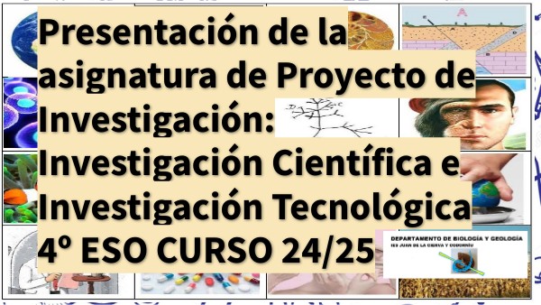 Presentación de la asignatura de Proyecto de Investigación: Investigación Científica e Investigación Tecnológica 4º ESO CURSO 24/25