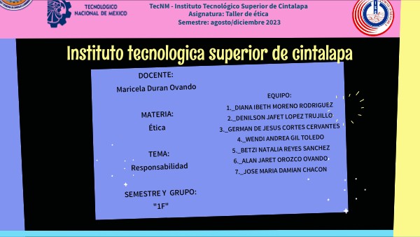DOCENTE: Maricela Duran Ovando MATERIA: Ética TEMA: Responsabilidad SEMESTRE Y GRUPO: "1F"