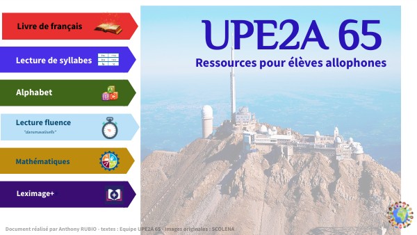 Document réalisé par Anthony RUBIO - textes : Equipe UPE2A 65 - Images originales : SCOLENA