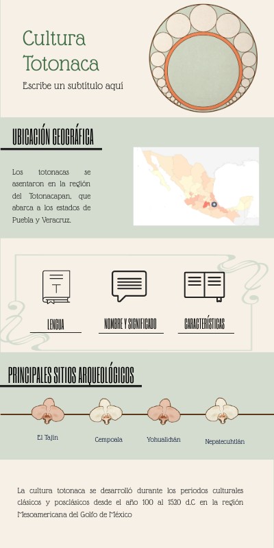 - Religión: La religión de los totonacas era politeísta y se centraba en el culto al sol ya la diosa del maíz. Se realizaban sacrificios humanos y no humanos.