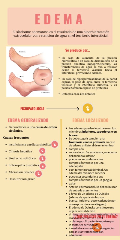 El síndrome edematoso es el resultado de una hiperhidratación extracelular con retención de agua en el territorio intersticial.
