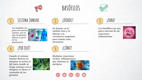 Los basófilos son parte del sistema inmune, son un tipo de globulos blancos y parte de los granulocitos