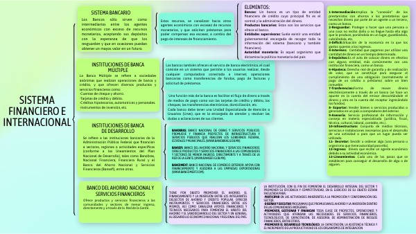 Bancos: Un banco es un tipo de entidad financiera de crédito cuyo principal fin es el control y la administración del dinero. Productos bancarios: Estos son los servicios que ofrece el banco. Entidades supervisoras: Suele existir una entidad gubernamental encargada de recoger toda la información del sistema (bancario y también financiero). Autoridad monetaria: Es aquel organismo que dictamina la política monetaria del país