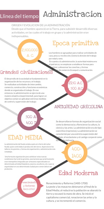 El desarrollo de la sociedad se fundamentó en la organización de los recursos y el trabajo.Se realizaban actividades de intercambio, comercio, construcción y funciones económicas donde se organizaba el trabajo. En ese entonces, la administración se ejercía de una manera empírica (experimental), para lograr un objetivo común se aplicaban estrictas medidas de control y supervisión del trabajo