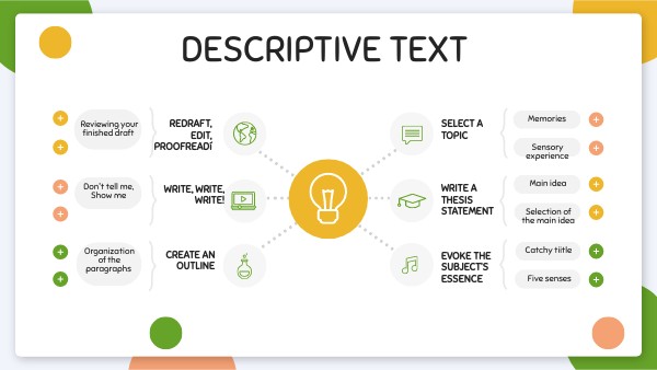 Descriptive text is designed to create a vivid and detailed picture in the reader’s mind, often evoking certain emotions or senses. So as to achieve this effect, descriptive texts often make use of figurative language such as similes and metaphors.