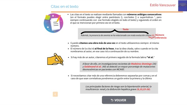 - El número de la cita irá al final de la frase, tras la idea citada, salvo cuando en la cita nombramos al autor, en ese caso irá a continuación de su nombre.
