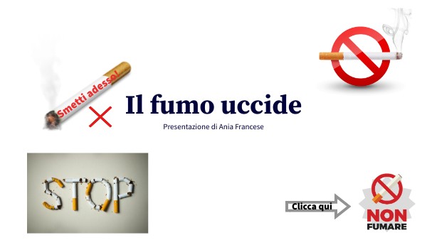 -Hai mai provato a fumare? No perchè non mi piace l'odore del fumo. -Ti danno fastidio le persone che fumano? No, però l'importante che rispettino le regole, e quindi non fumino dove non si può. -Hai mai incoraggiato qualcuno a non fumare? Si, ora sto cercando di aiutare mia figlia a smettere. -Conosci qualcuno che fuma? Si, mia figlia e alcune mie amiche. -Ti piacerebbe iniziare a fumare? No, perchè fumare fa male alla salute.