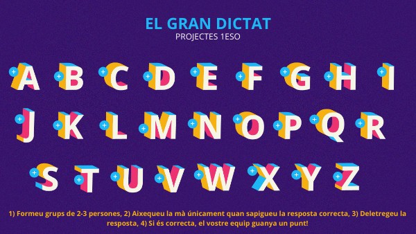 1) Formeu grups de 2-3 persones, 2) Aixequeu la mà únicament quan sapigueu la resposta correcta, 3) Deletregeu la resposta, 4) Si és correcta, el vostre equip guanya un punt!