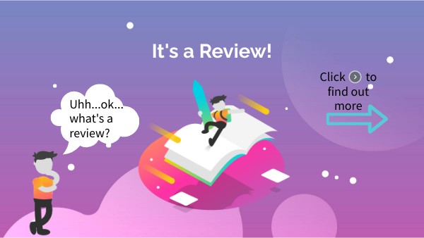 - A review activity 'reviews' a topic or group of topics you have been working on recently