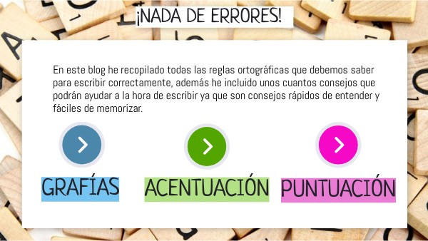 En este blog he recopilado todas las reglas ortográficas que debemos saber para escribir correctamente, además he incluido unos cuantos consejos que podrán ayudar a la hora de escribir ya que son consejos rápidos de entender y fáciles de memorizar.