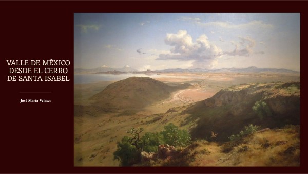 Fernández, Tomás y Tamaro, Elena. Biografía de José María Velasco. (s. f.). https://www.biografiasyvidas.com/biografia/v/velasco_josemaria.htm Museo Nacional De Arte. (1877). Valle de México. http://munal.emuseum.com/objects/185/valle-de-mexico?ctx=3d7e8c6b-bb88-4a68-b26f-356c74323e98&idx=10 Vista del Valle de México desde el cerro de Santa Isabel. (2015, 3 noviembre). Picturing the Americas. http://picturingtheamericas.org/painting/view-of-the-valley-of-mexico-taken-from-santa-isabel-hill/?lang=es