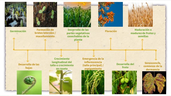 El desarrollo de las plantas se divide en etapas de crecimiento. Las diez etapas de crecimiento vegetal son las siguientes: