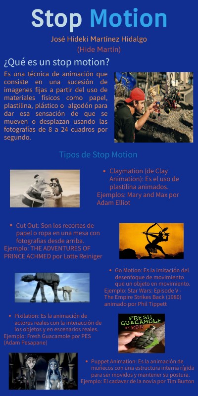 Es una técnica de animación que consiste en una sucesión de imagenes fijas a partir del uso de materiales físicos como papel, plastilina, plástico o algodón para dar esa sensación de que se mueven o desplazan usando las fotografías de 8 a 24 cuadros por segundo.