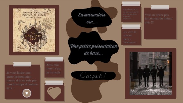 Sirius : imagnie être super poilu Remus : imgine ne jamais avoir eu un câlin en tant qu'enfant James : les filles sont en train se battre !! Remus : très bien mr "mystérieuse cravate de serpentard dans son lit après une fête" James : Pardon…