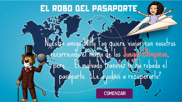 Nuestro amigo Willy Fog quiere viajar con nosotros recorriendo el mapa de los Juegos Olímpicos, pero... El malvado transfer le ha robado el pasaporte. ¿Le ayudáis a recuperarlo?