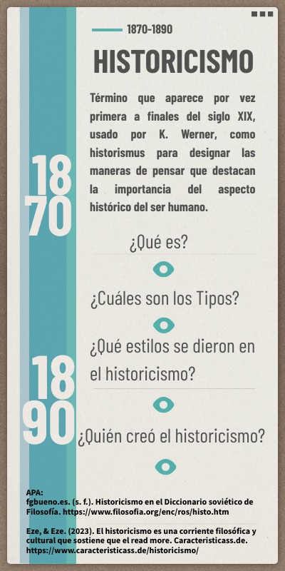 Término que aparece por vez primera a finales del siglo XIX, usado por K. Werner, como historismus para designar las maneras de pensar que destacan la importancia del aspecto histórico del ser humano.